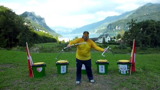 Montag 09.07.2012 Nach dem intensiven Trommeln von über 4 Stunden bin ich doch recht müde. Aber für den Chuck Off 2012 schwinge ich noch das 3er-Nunchaku. Es sind doch noch etliche Techniken herausgekommen. Das 3er-Nunchaku ist aus Metall, ist 115 cm lang und wiegt ca. 650 Gramm.